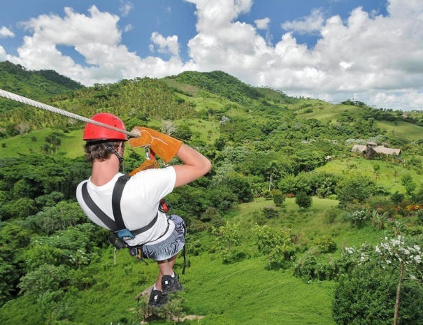 Mentre cammini sulla piattaforma sospesa, in cima alla montagna, fuori dalla scenografia del galeone pirata, ti prepari a lanciarti nella prima discesa: oltre 300 metri di lunghezza, la prima di un totale di 12 linee Zip Line. Il circuito utilizza solo attrezzature della più alta qualità, con un sistema a 3 cavi per garantire massima sicurezza. Con una capacità fino a 26.000 libbre, puoi vivere l’esperienza in solitaria oppure fare un volo in doppio con uno dei nostri istruttori, se preferisci sentirti più sicuro. Sei agganciato con un doppio imbrago, dotato di due carrucole che scorrono lungo due dei cavi superiori. A 350 piedi dal suolo, ti aspetta un’esperienza emozionante e indimenticabile.